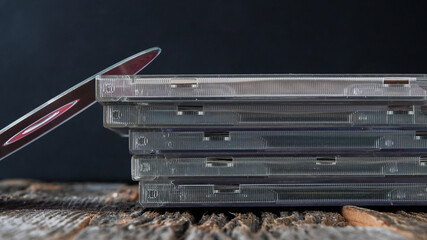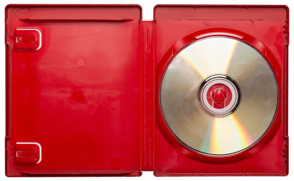 CD disk video case on black background. Isolated music transparent mockup. Clean cover box template.