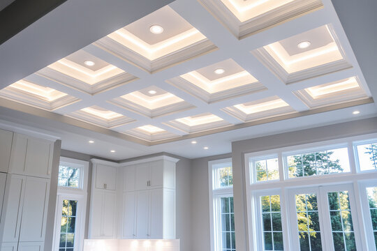 Bright White Tray Ceiling with Recessed and Cove Lighting