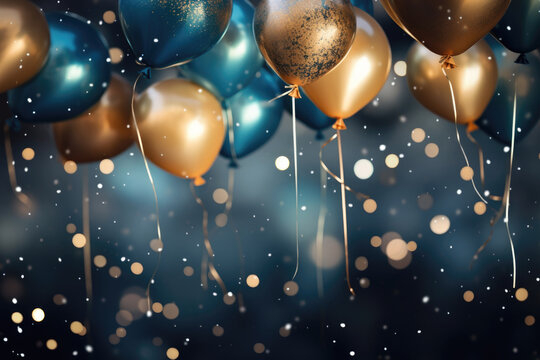 Christmas and New Year celebration festive shiny background, air baloons holiday frame