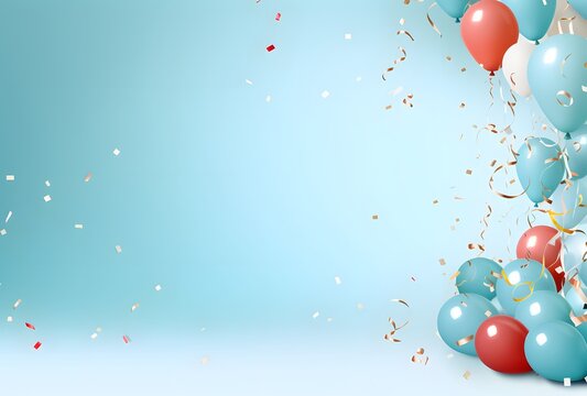 Festive vector banner with blue and white balloons and confetti - ideal for celebrations and parties
