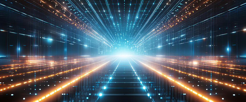 未来へ伸びる光のライン。抽象的なスピード感ある背景。Abstract Light Streaks Extending Forward Futuristic Speed Background.