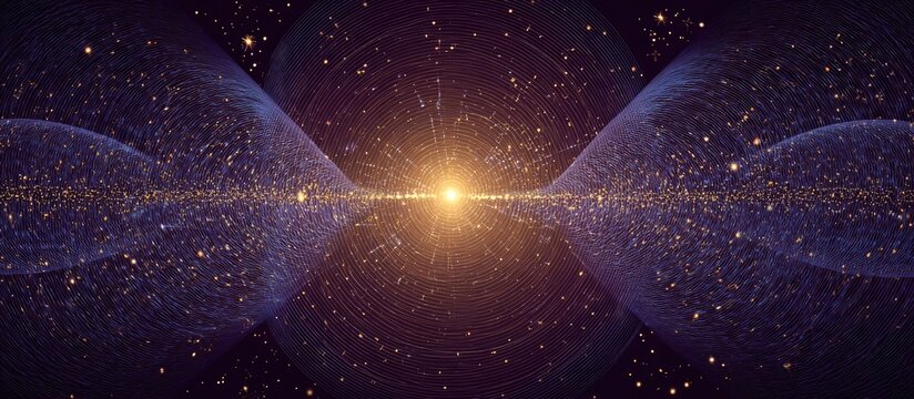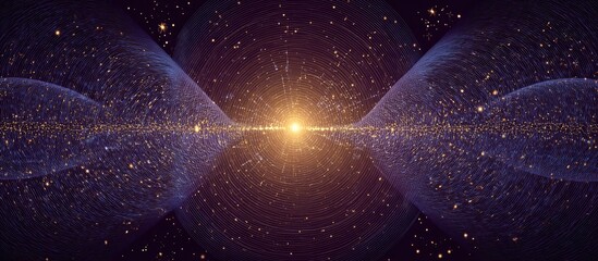 Glowing core emits light and energy, creating shimmering celestial patterns