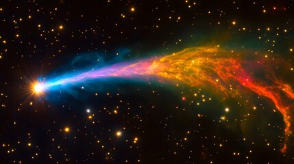 cosmic golden dust wave shimmering particles celestial energy flow interstellar nebula glowing space phenomenon ethereal light streaks dark starry background
