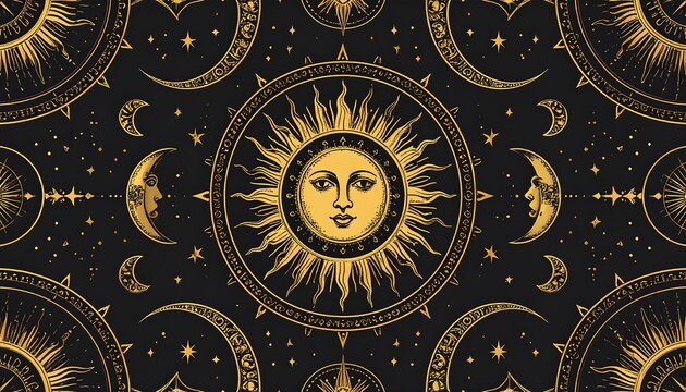 Golden sun and moon celestial design