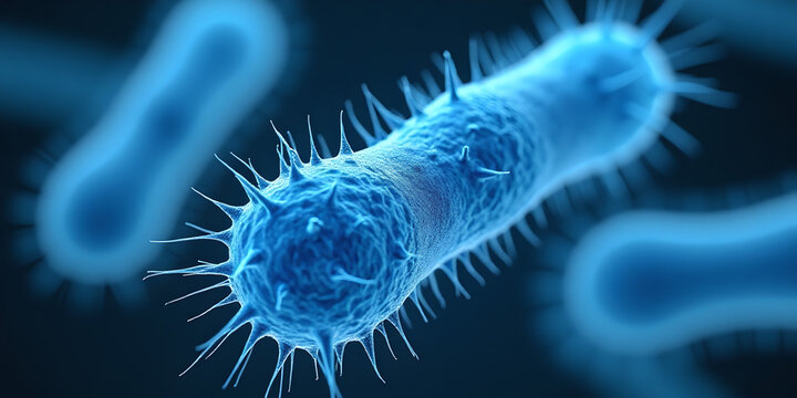 Close-Up 3D Illustration of Glowing Blue Bacteria Cells