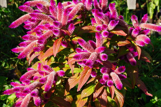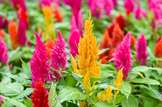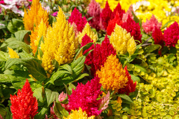 colorful celosia plumosa or Pampas Plume Celosia flowers blooming in the garden yellow flowers
