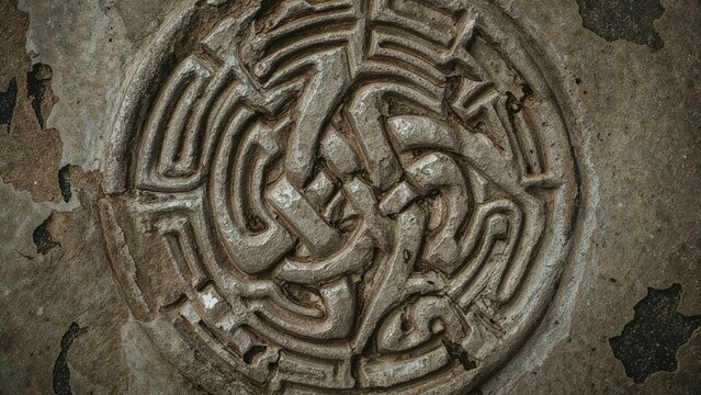 Carved Celtic knot pattern in stone, historical craftsmanship and durability