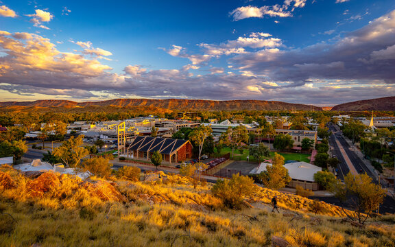 View of the West Macdonnel ranges from the Mt Sonder lookout at sunset, Central Australia.