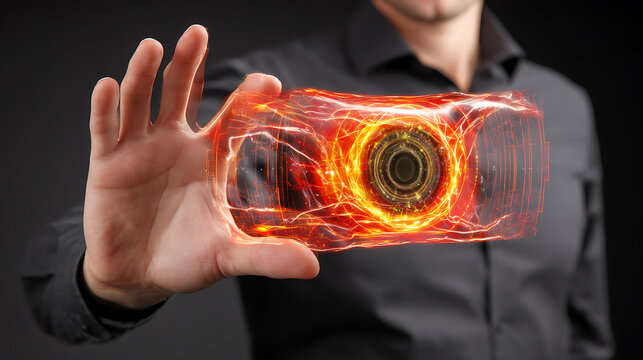 Holographic hud projecting concentric rings and radial arcs in futuristic blue interface
