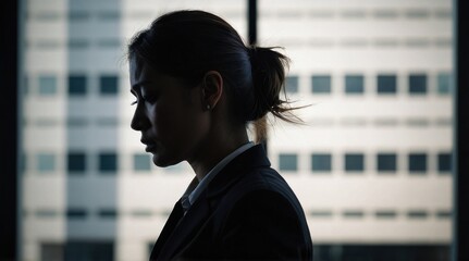 Stressed depressed unhappy businesswoman silhouette. Business finance problem bankruptcy. Depression headache cephalalgia concept