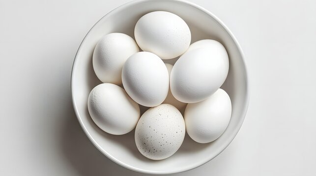 Fresh brown eggs arranged in a white ceramic holder on wooden kitchen table, natural food ingredient concept