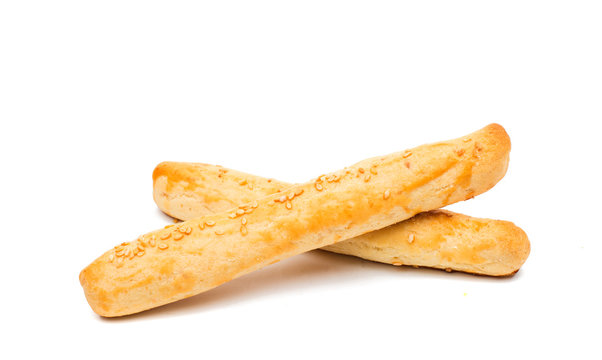 Breadsticks are arranged on a white background.