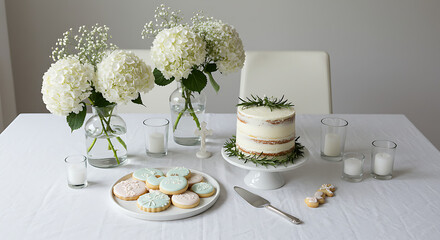 religious holiday table, the shavuot holiday table adorned with flowers and candles symbolizes the jewish tradition of receiving the torah