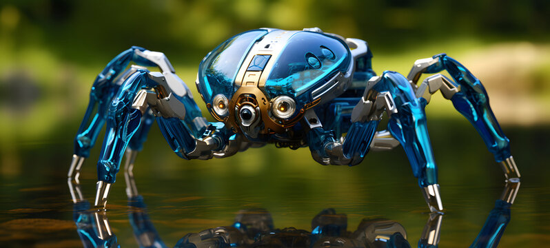 transform water spiders-shaped nano robot, ai generative