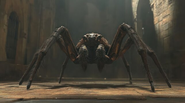 Giant spider menacing ancient ruins, game asset