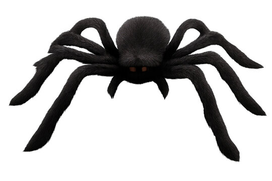 Black hairy spider animation asset on transparent alpha channel background for halloween and scary concepts