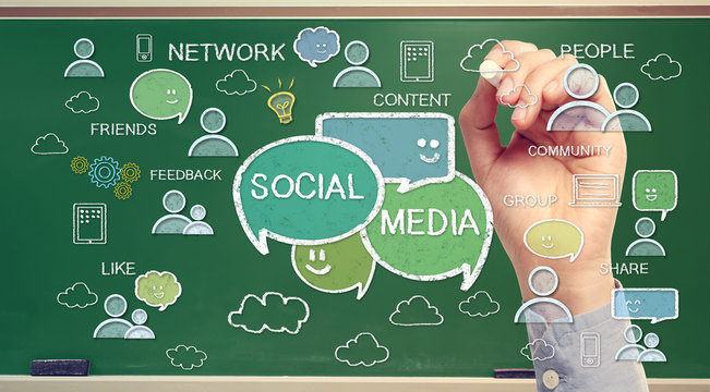 Social media concept on green chalk board