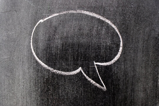 White chalk hand drawing in round bubble speech shape with blank space on blackboard background