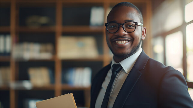 A portrait of a lawyer with a subtle smile, closing a case file with a sense of satisfaction, the soft shadows in the office highlighting the relief and accomplishment after a challenging case