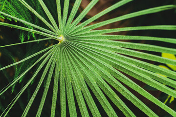 Green leaves of the Mediterranean dwarf palm Chamaerops humilis