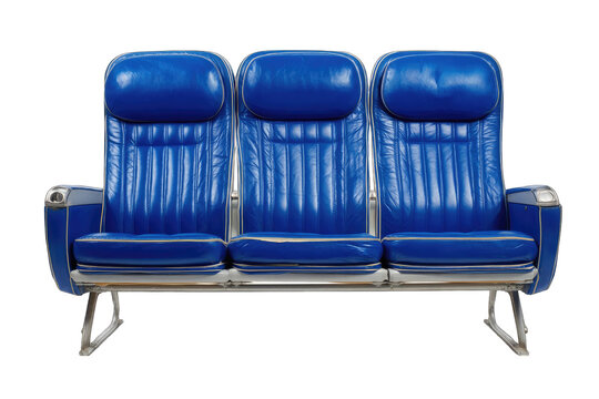 Bold blue channel tufted sofa bathed in bright sunlight on a white wall casting soft dramatic shadows. AI Generated