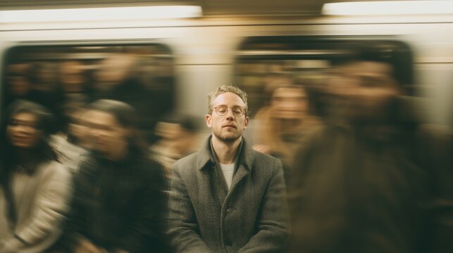 blur of movement as people rush past on a crowded city street, their phones acting as windows into their digital worlds.