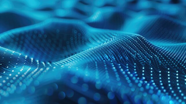 Blue abstract background of dots. Texture of random particles. Chaotic ornament, mosaic. Linear pattern of small dots