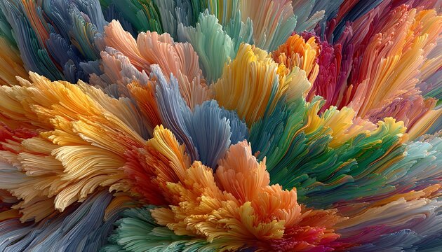 Chaotic abstract design in multicolor bursts clashing with rigid line structure