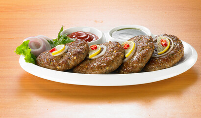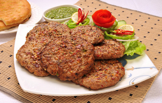 chicken kebab or shami kebab or indian food or chapli kebab or chicken tikki or keema tikki or potato kebab