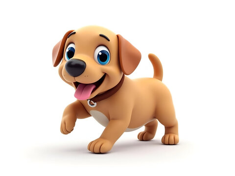 Adorable cartoon dog with blue eyes, tongue sticking out, and collar in a playful pose