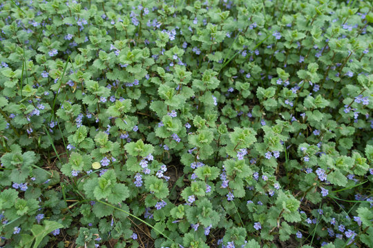 Lots of small violet flowers of Glechoma hederacea in spring