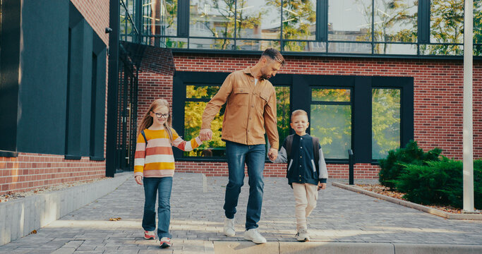 Formal colleagues entering office building