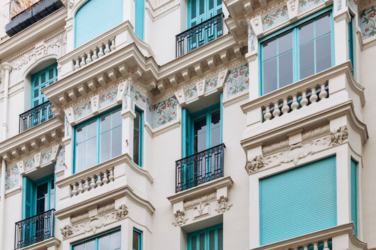 Facade of an old building in the city center of Nice, showcasing classic architecture and historical charm