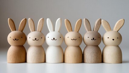 A charming collection of minimalist wooden safari animal toys displayed on a textured fabric surface for children's play and education.
