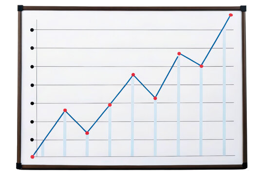 Whiteboard with a line graph showing business growth and success isolated with transparent background