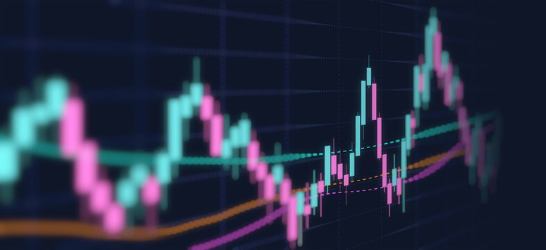 Vibrant financial candlestick chart with trend lines