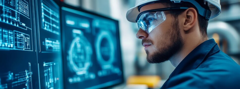 Innovation technology professional analyzing data with digital panels