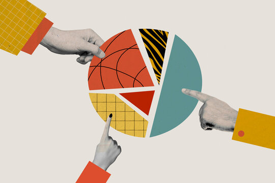 Business connecting piece of multi pie wood chart