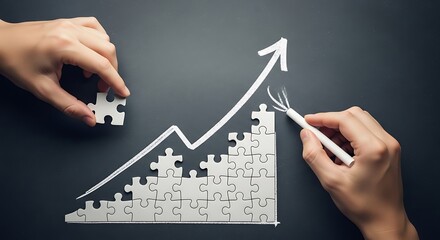 Growth chart concept with jigsaw puzzle pieces and upward trend depicting business success and strategic planning