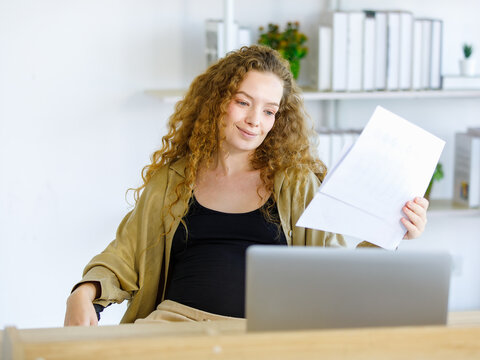 Businesswoman is reading information of new business project and