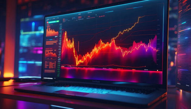 Dynamic stock market graph with data points and charts