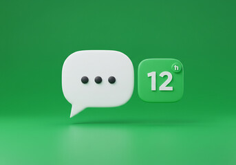 3D Render of White Chat Bubble and Green Number Notification Icon on Green Background