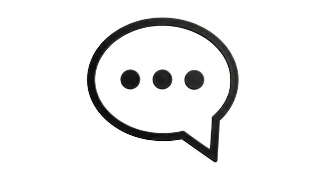 Isolated chat bubble icon with three dots, minimalist communication or message symbol