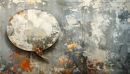 Closeup photo of a vintage comic book page with blue dot printing pattern and empty speech bubble on paper texture background