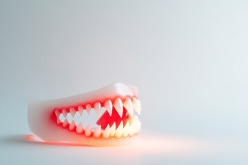 Classic chattering teeth wind-up toy on a modern pink background with copy space.