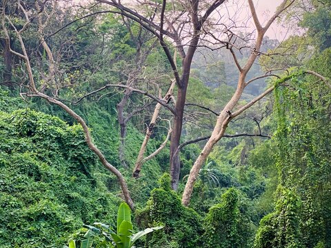 Sunlight Over Red Steps and Green Hill Trees in Chattogram.