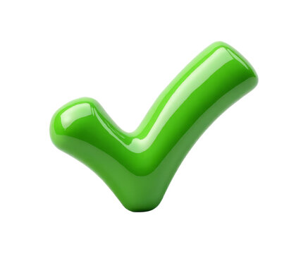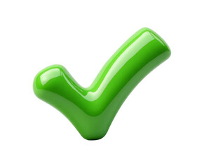 Green check mark icon. Symbol of approval. 3D rendering, modern illustration. Light backdrop.