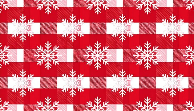 Festive red and white checkered pattern with snowflakes