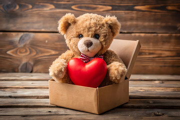 Teddy bear holding heart in box