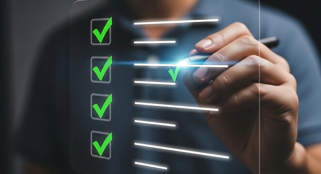 Hand checking off items on a digital checklist interface